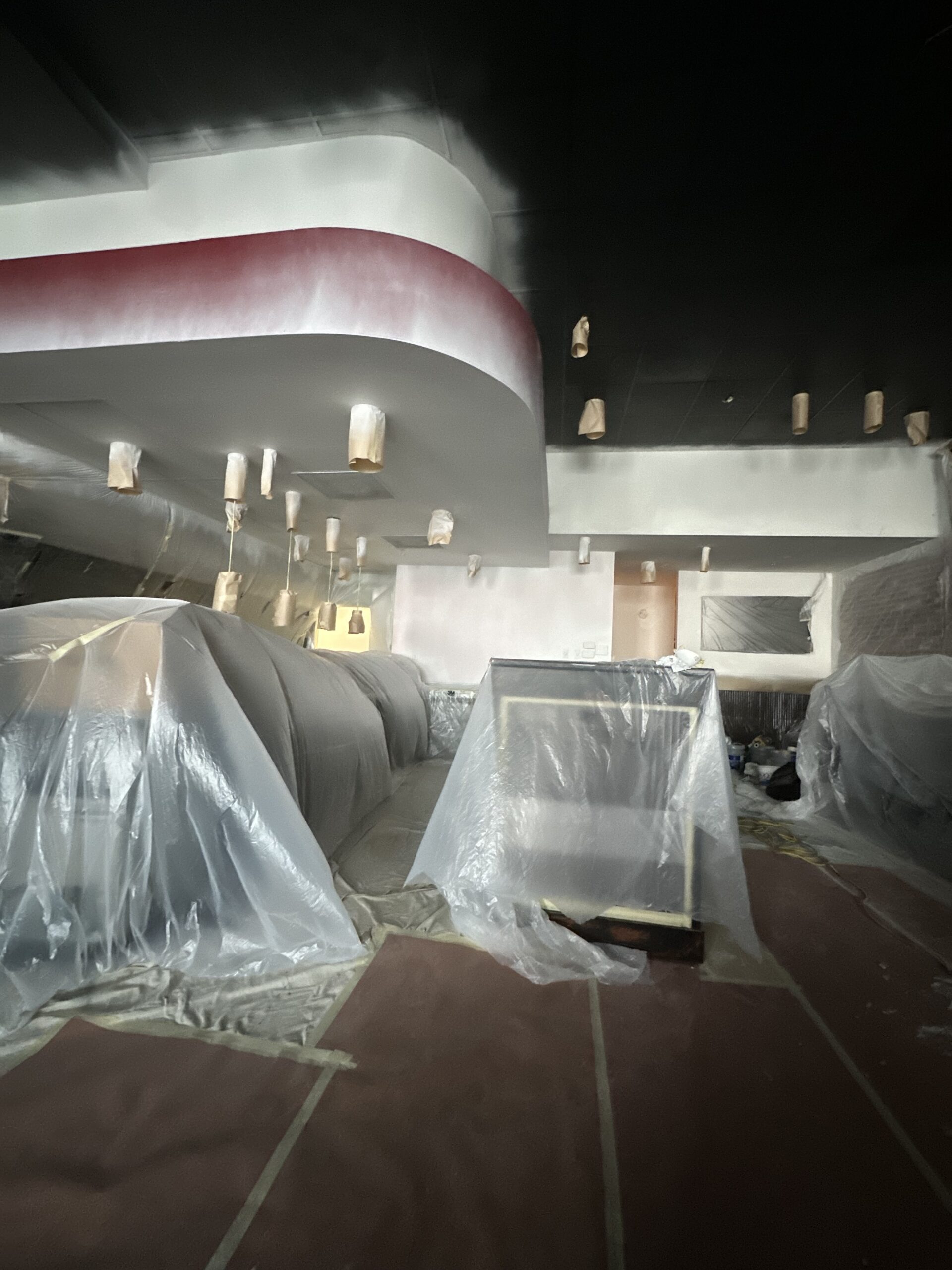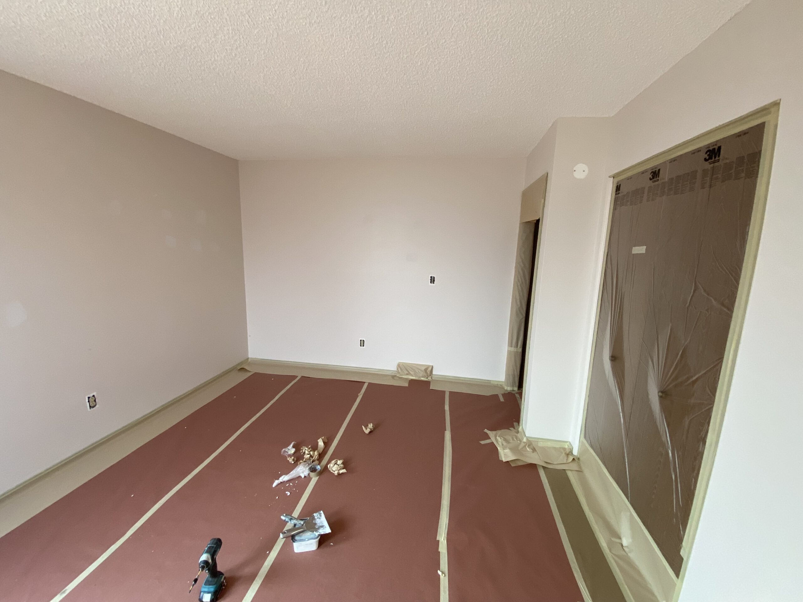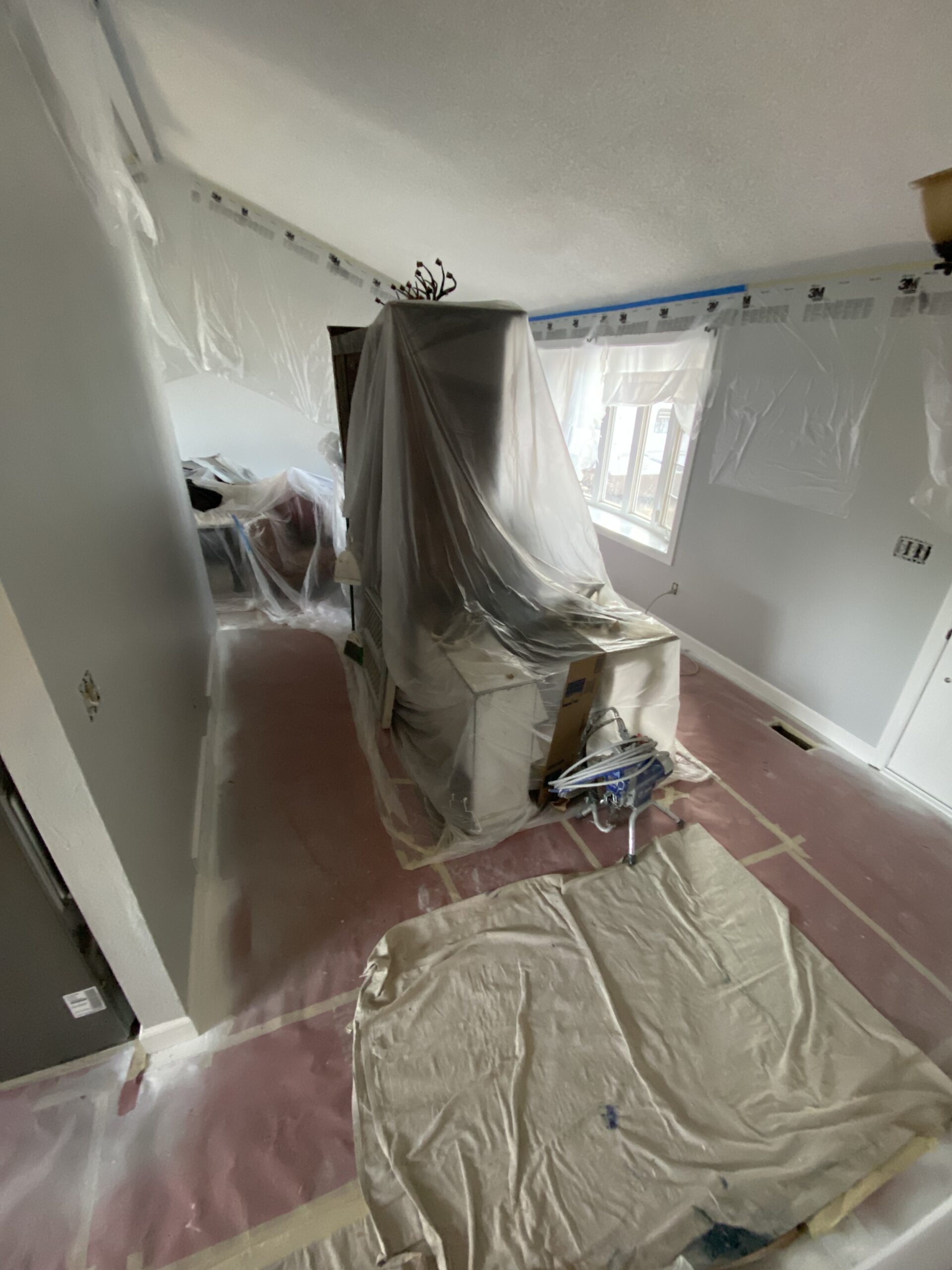 For example, when painting a kitchen, cabinets, countertops, and appliances may be covered during the day. In bedrooms, furniture may remain protected and shifted away from walls overnight.