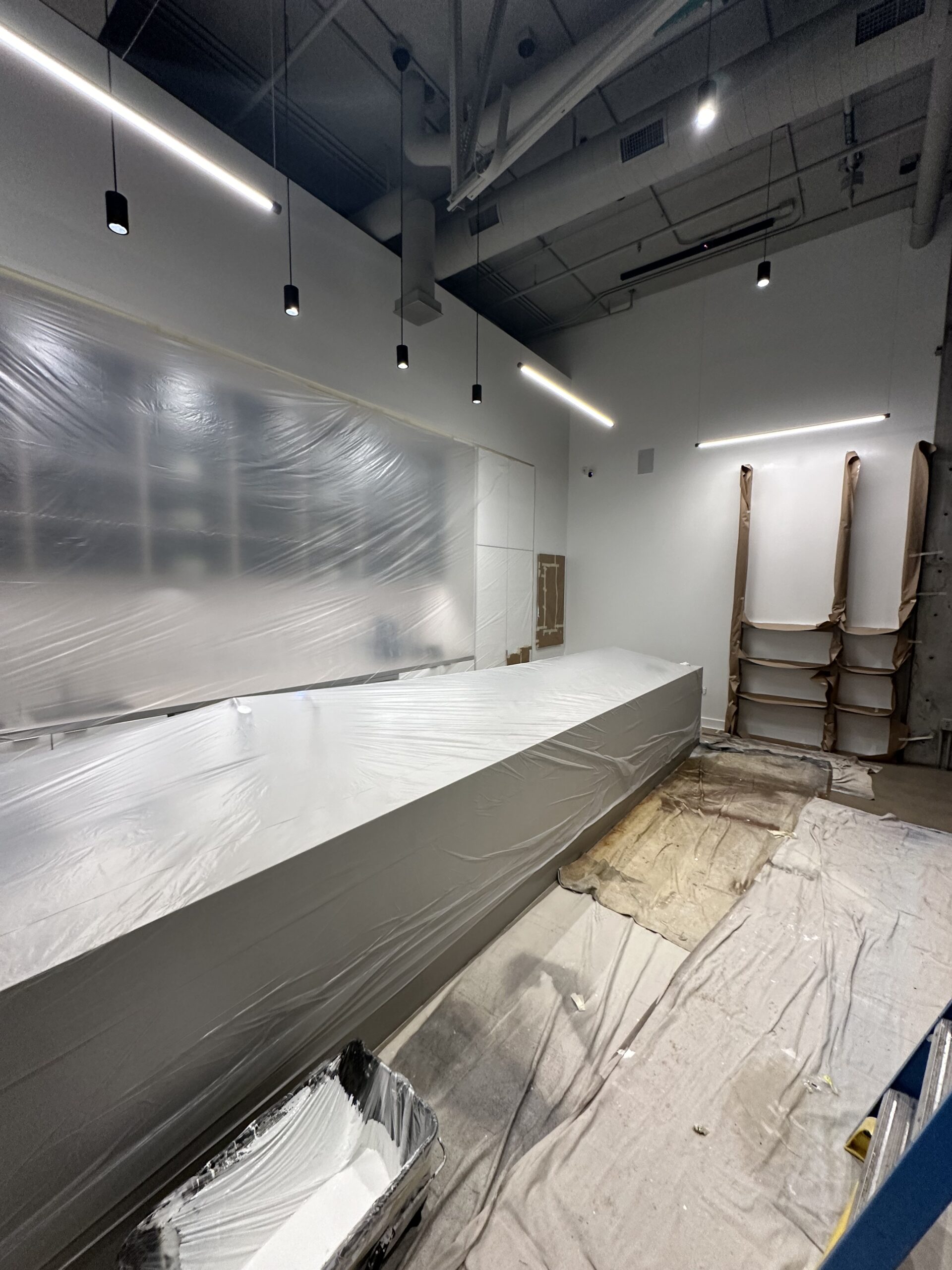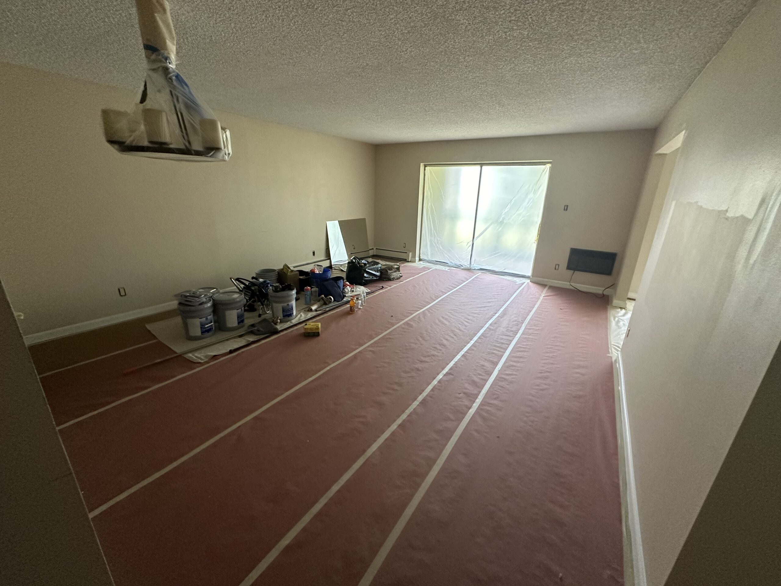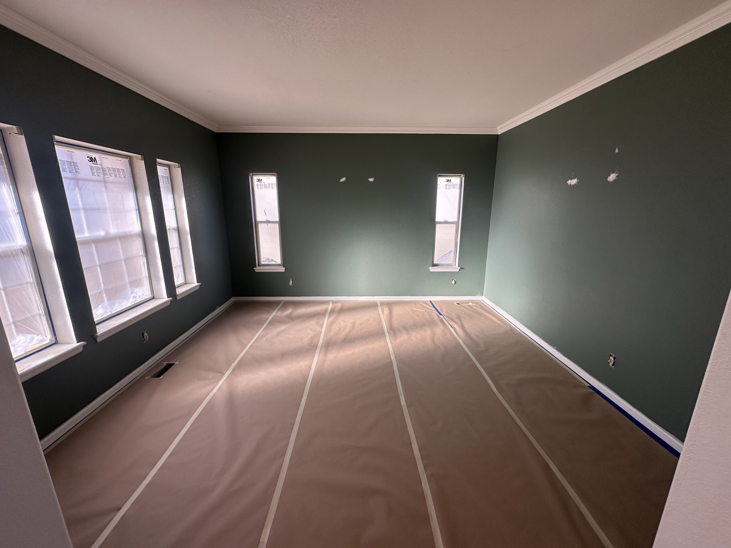 For example, when painting a kitchen, cabinets, countertops, and appliances may be covered during the day. In bedrooms, furniture may remain protected and shifted away from walls overnight.