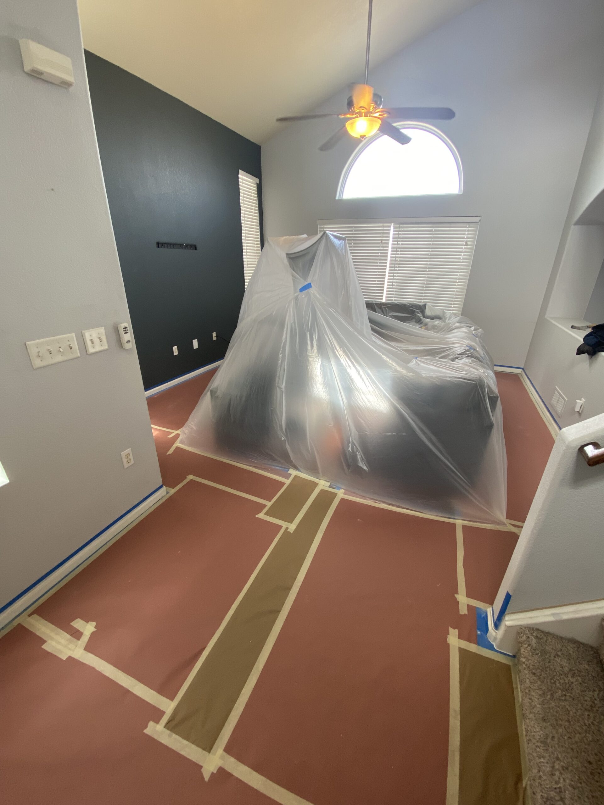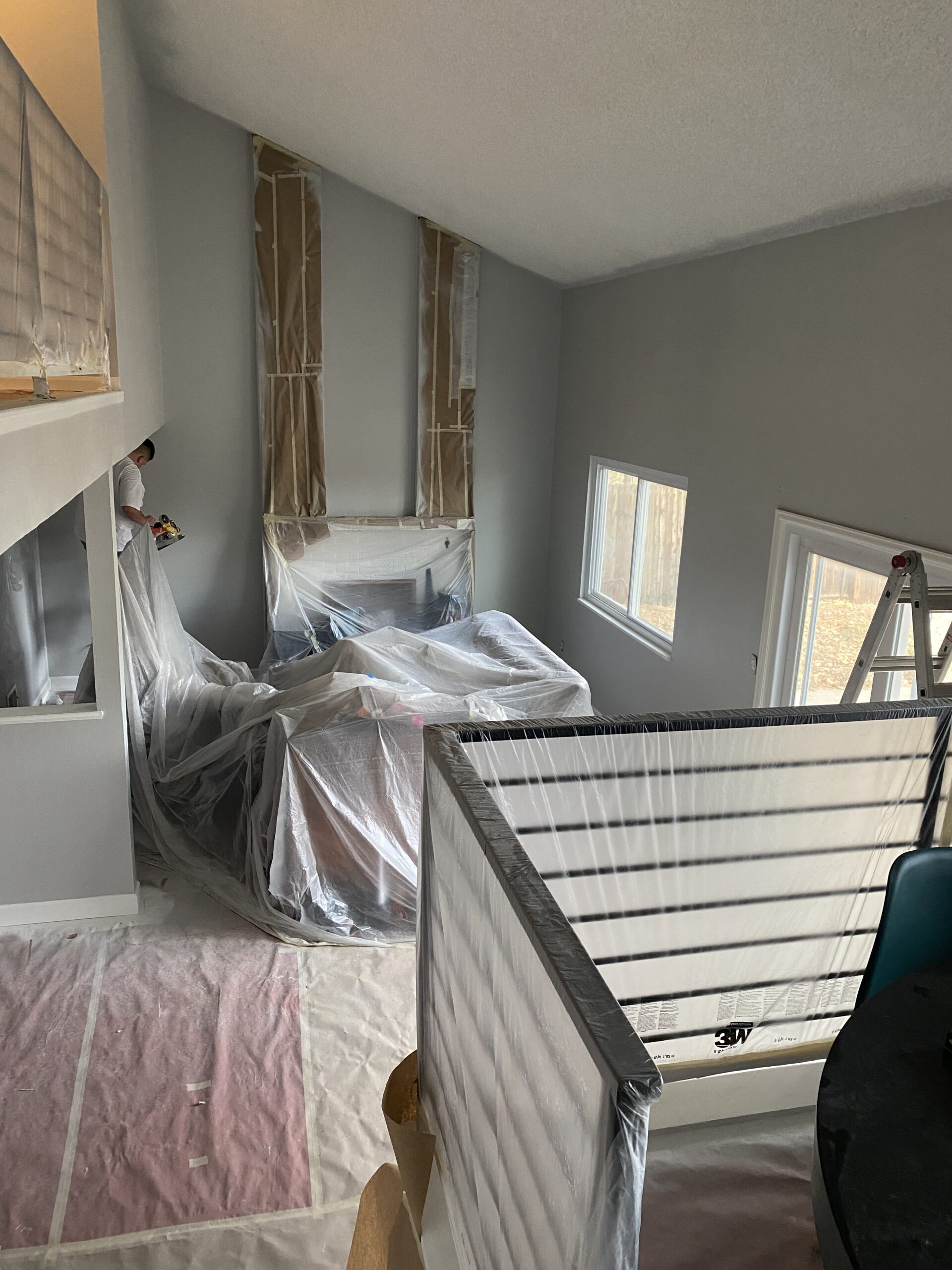 Once larger items are moved, our team will shift remaining furniture toward the center of the room, create a safe working perimeter along the walls, and cover floors and furniture with professional-grade protective materials.